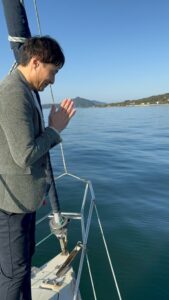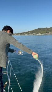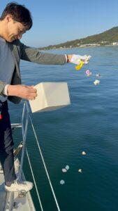 本日は、福岡市にある海、玄界灘で海洋散骨を行なってまいりました。