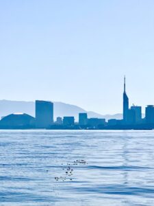 海面に浮かぶお花の向こうに福岡タワーが見えている写真に感動しました。