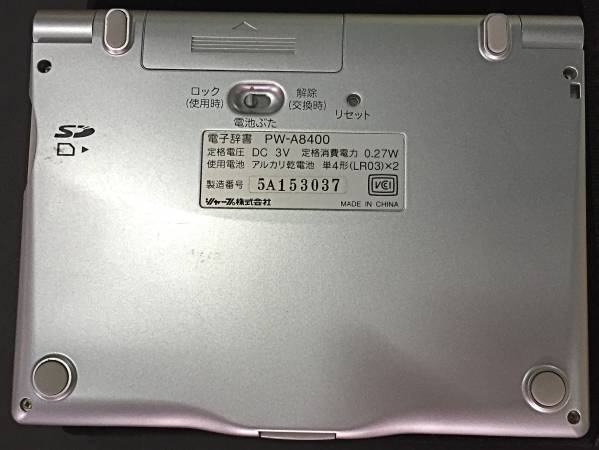 家電の買取実績(SHARP/シャープ Papyrus 電子辞書 PW-A8400の買取り実績