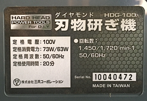 ダイヤモンド刃物研ぎ機 HDG-100 HARD HEAD製の買取り実績
