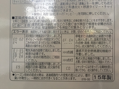 2015年製 石油ファンヒーター
