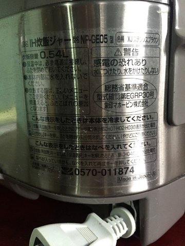 家電の買取実績 (ZOJIRUSHI/象印 IH炊飯ジャー NP-GE05 3合 2012年製)の買取り実績