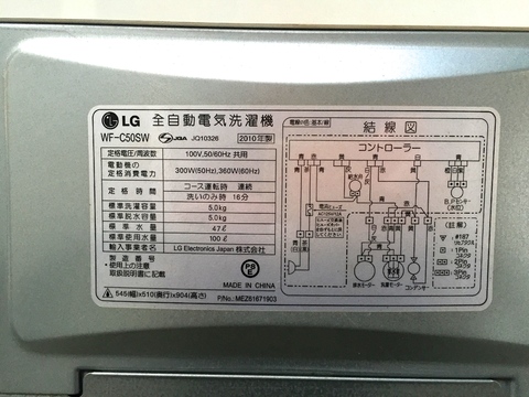 家電の買取実績 (LG 風乾燥付洗濯機 5.0kg WF-C50SW 2010年製)の買取り実績