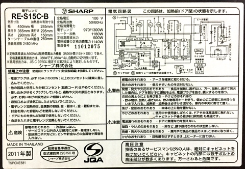 HOME> 全ての買取実績 > 家電・電化製品類 > 家電製品の買取実績 (シャープ/SHARP オーブンレンジ RE-S15C-B 2011年製)