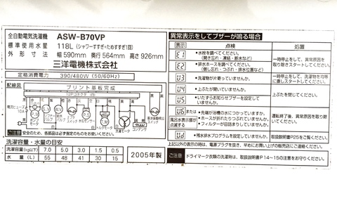 2005年製 全自動洗濯機 7.0kg